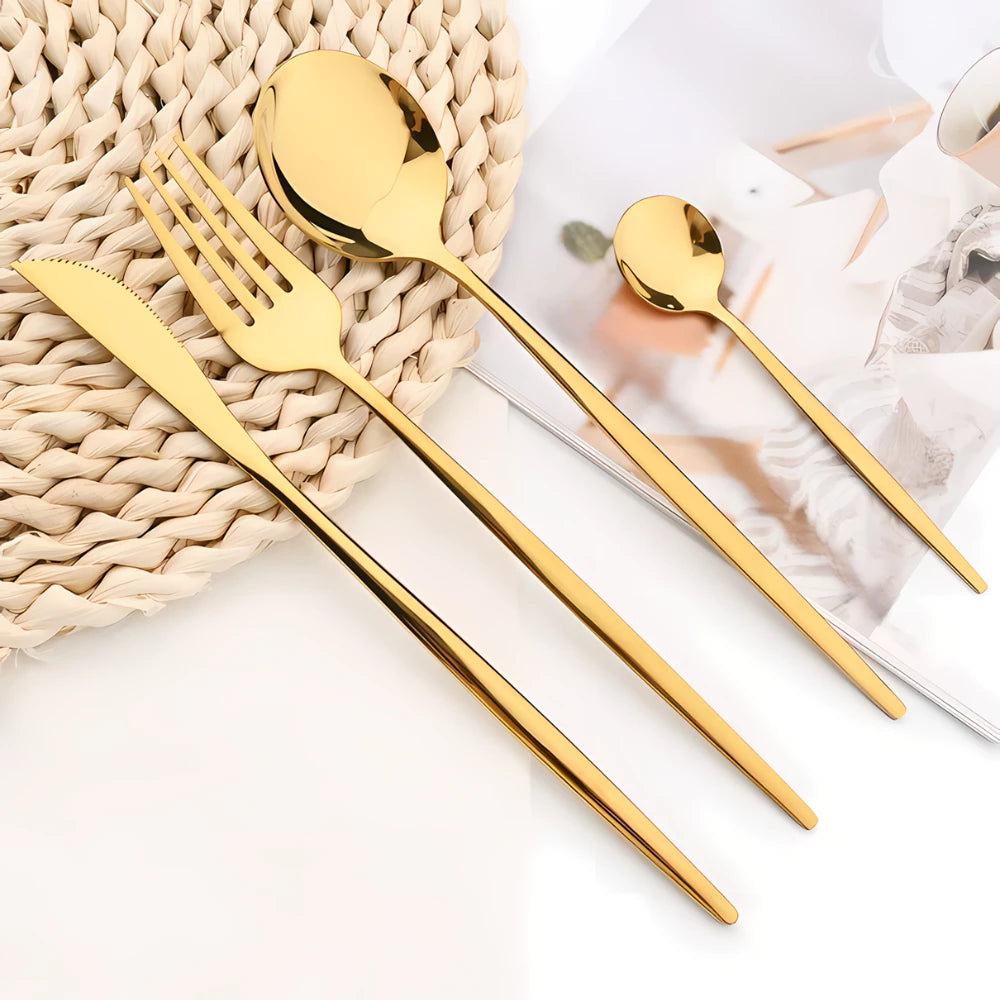 O peso perfeito do aço inoxidável, o brilho que reflete a luz das velas, o conforto que transforma o ato de comer em ritual. São detalhes que fazem até o simples arroz com feijão parecer uma iguaria