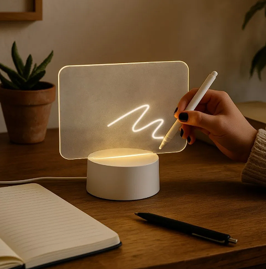 ✅ Vem com caneta de giz líquido para personalizar o acrílico e deixar mensagens iluminadas.