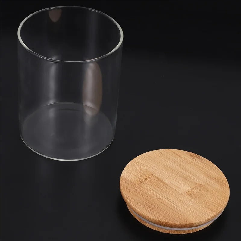 Este pote não armazena comida; ele mostra seus ingredientes. A tampa de bambu natural é o toque de sofisticação rústica que as donas de casa e chefes da gastronomia adoram. É para quem entende que a beleza da cozinha está nos detalhes. Seus solicitados notarão. Eles sempre notam