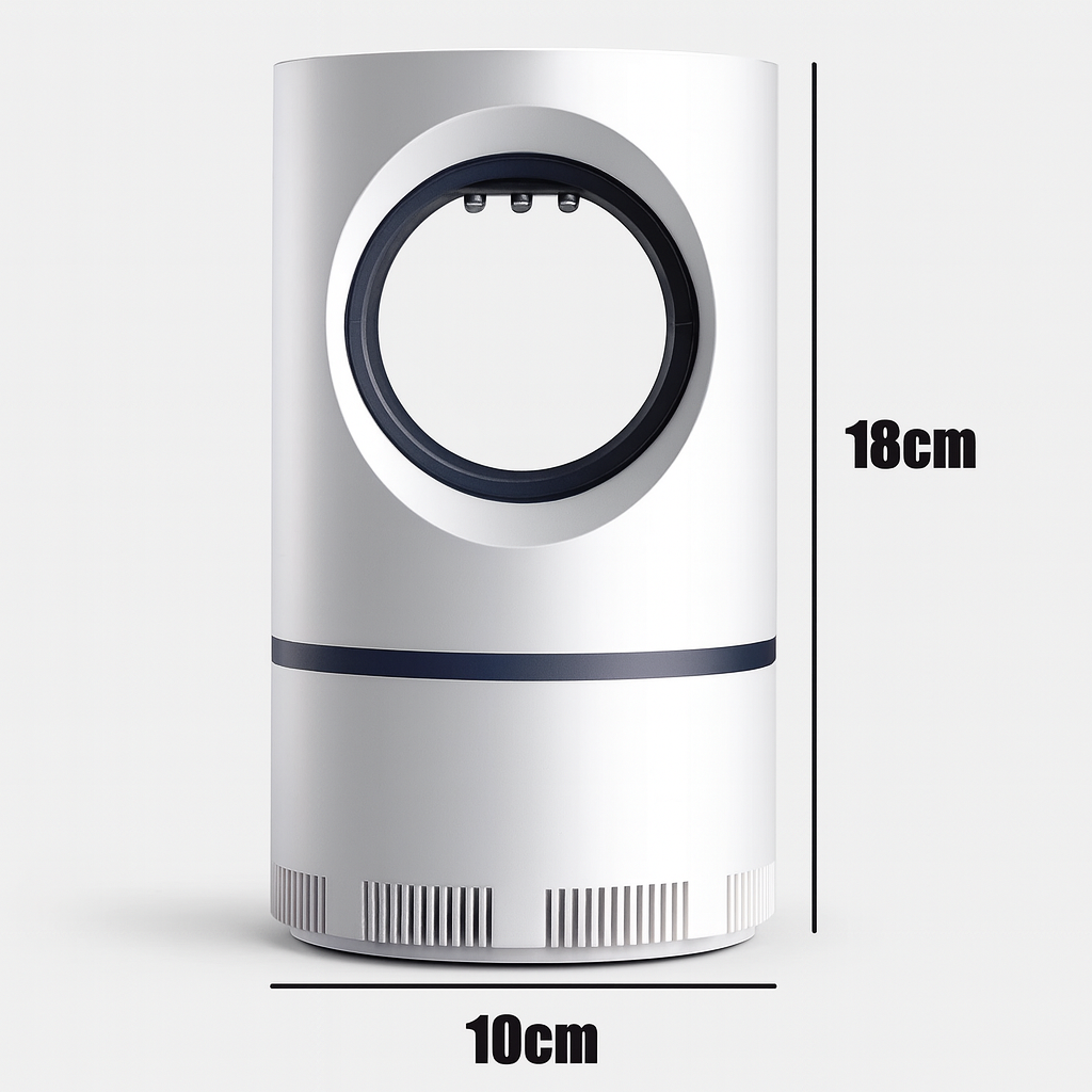O Abraço do Ciclone: Assim que o mosquito se aproxima da luz sedutora, o sistema de ventilação silenciosa cria um vórtice de sucção poderoso. A física entra em ação: a pressão centrífuga o puxa para a base, onde ele fica preso. Sem choques barulhentos, sem cheiro de queimado. Apenas a desidratação rápida e o fim da linha.
