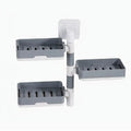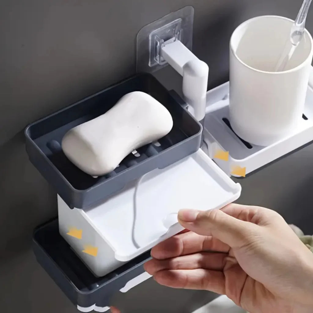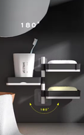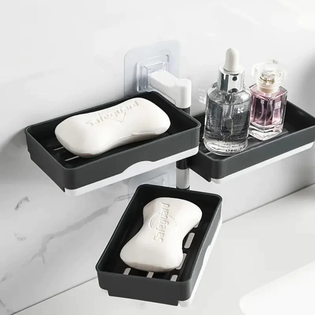 Enquanto outras saboneteiras oferecem um único compartimento, perpetuando a bagunça, a nossa possui três divisórias inteligentes. Isso significa separação total: sabonete sólido em um, esponja de banho em outro, e uma escova facial ou lâmina de barbear no terceiro. Fim da mistura anti-higiênica